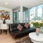 Spacious suite with a pampering ambiance, as well as a wide panoramic view that covers city, mountains and ocean (Coal Harbour).